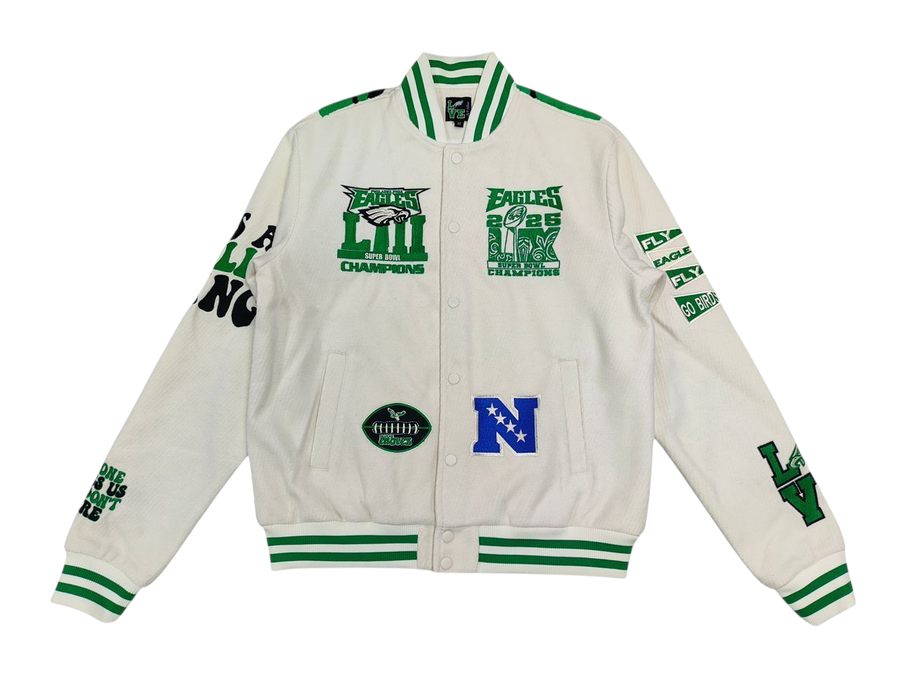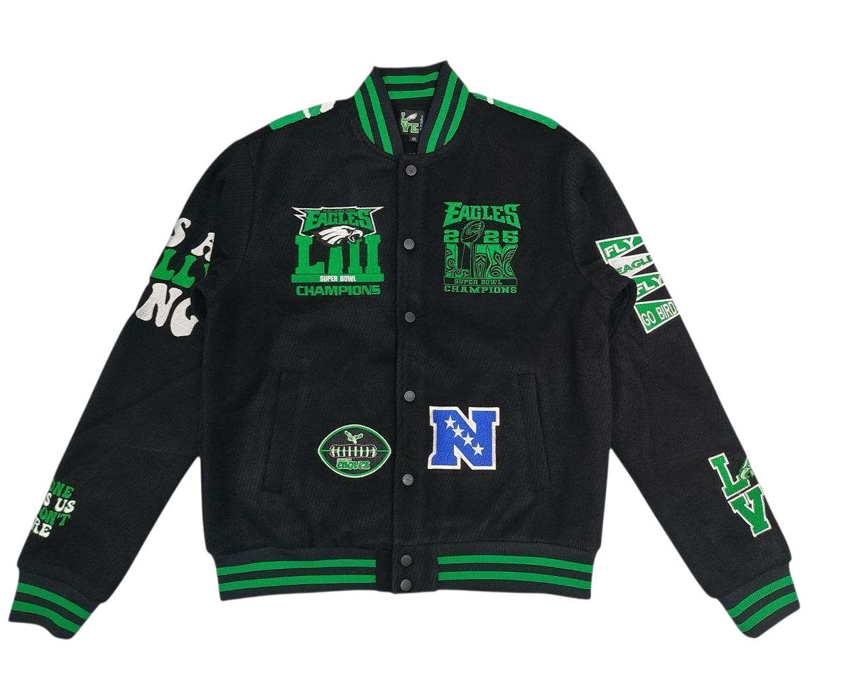 Beautifully designed specifically for the EAGLES FANS, this jacket features Both SUPERBOWL and all the Fun Philly Phrases.